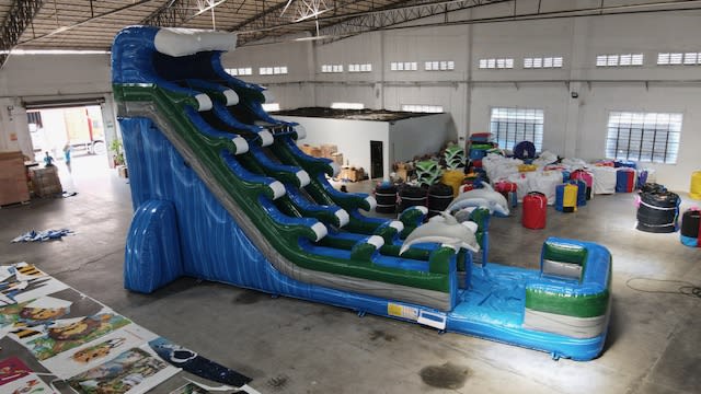 This water slide features a single lane design, ensuring that each rider gets their own thrilling experience as they race down the slide. The eye-catching dolphin theme adds a fun and whimsical touch that will delight partygoers of all ages. 🎉🐬