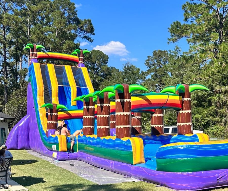 Don't miss out on the fun – book the 28' Double Tropics Water Slide for your next event and make a splash! 🌴💦